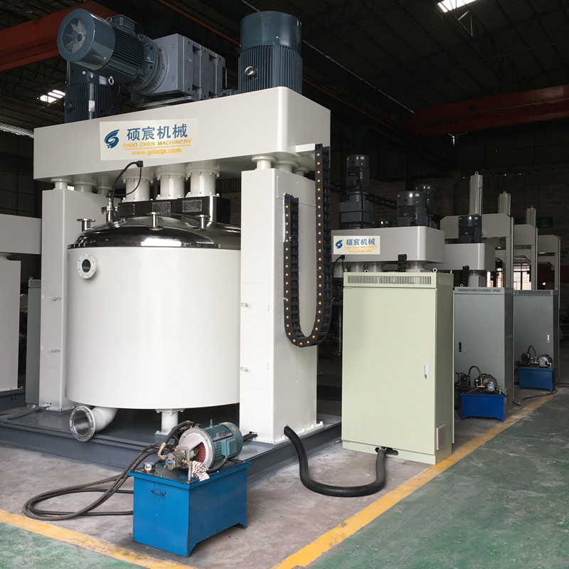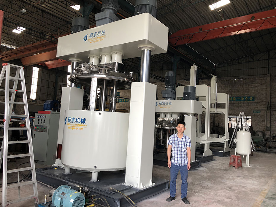 其中強(qiáng)力分散機(jī)(制膠機(jī))是硅酮密封膠、玻璃膠、結(jié)構(gòu)膠的生產(chǎn)設(shè)備中的主要組成部分,也是硅酮膠、玻璃膠的整條生產(chǎn)線中為重要設(shè)備部分。強(qiáng)力分散機(jī)是一種快速攪拌機(jī),有三個(gè)動(dòng)力驅(qū)動(dòng)的電動(dòng)機(jī),釜內(nèi)有三根不同形式、高低速結(jié)合的攪拌器;是一種應(yīng)用行業(yè)廣泛、密封性好、可抽真空、具有良好的脫泡效果、攪拌無(wú)死角、高低速結(jié)合、攪拌分散充分快速的混合攪拌設(shè)備。若想要了解更多的工況,您可以提出您所需要的處理量、設(shè)備形式、規(guī)格要求或您需要加工的物料的性質(zhì),根據(jù)您的情況碩宸的銷售工程師會(huì)提供讓您滿意的方案。